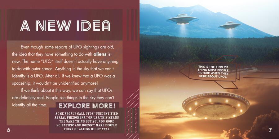 For years, people have reported seeing strange objects in the sky. Sometimes these take the form of lights or vague shapes; other times, the witnesses give detailed descriptions of what they believe to be alien spacecraft. In 2022, the United States Congress stated that reports of UFOs have been growing, but these flying objects often remain unidentified. What is the truth? Supplemented with informative graphic organizers and engaging fact boxes, the age-appropriate text delves into the history of UFO sightings and their probable explanations. A glossary of new terms also helps readers expand their scientific vocabulary.